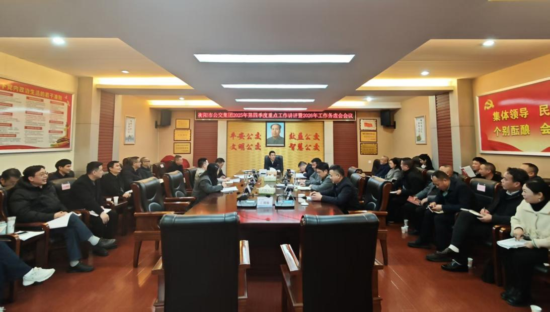 为进一步厘清发展思路、明确目标任务、凝聚干事合力,1月8日,衡阳市公交集团在三楼会议室召开2025年第四季度重点工作讲评暨2026年工作务虚会。集团党委书记、董事长周新生出席会议并作总结讲话,党委副书记、总经理唐灿主持会议。