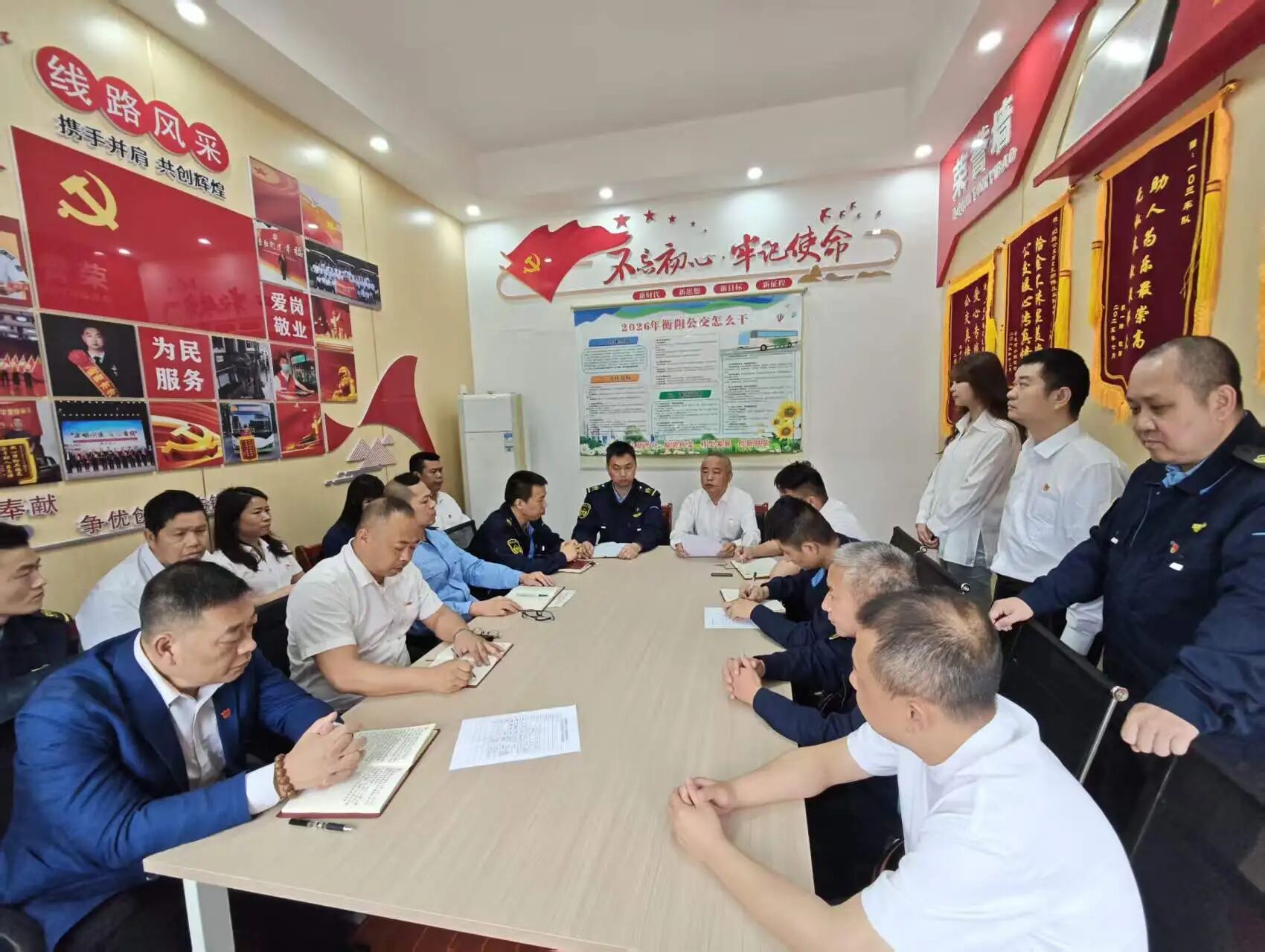2026年4月13日,为深入学习贯彻衡阳公交集团2026年“主业提质、辅业延链、管理增效、创新赋能”四大核心任务,全面落实“向经营要效益、向管理要质量、向改革要活力、向创新要动能、向模式要空间”的目标导向,切实破解党建与业务“两张皮”难题,衡阳公交集团三分公司党支部创新党课载体形式,在劳模工作室开讲专题微党课。本次微党课由省级岗位学雷锋标兵、衡阳市劳动模范、103路党员示范岗驾驶员刘念文主讲,一线驾驶员、车队长、调度员等党员职工代表参与,摒弃空洞说教、聚焦岗位实干。